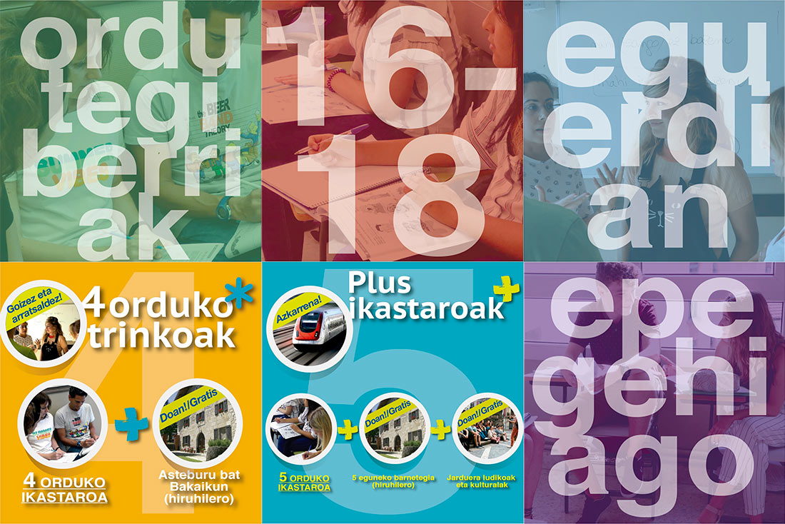 Urriarekin batera, datorren asteanĀ Gabriel Aresti euskaltegian abiatuko direnĀ 2023-2024 ikasturteko ikastaroetan zenbait berritasun ditugu, ordutegietatik abiatuta, izan ere, aurten ordutegi berriak jarri ditugu eguerdietan: 12:30-15:00 astelehenetik ostegunera (ostiralak libre) eta 14:00-15:30 astelehenetik ostiralera (1,5 ordu egunero). Horiez gain, ohiko eguneroko bi ordukoek ordutegi aukera zabala dute, baita astelehenetik ostegunera bitarteko 2,5 ordukoek ere. Matrikula egiteko epea zabalik dago oraindik, webgunean zein bulegoan.